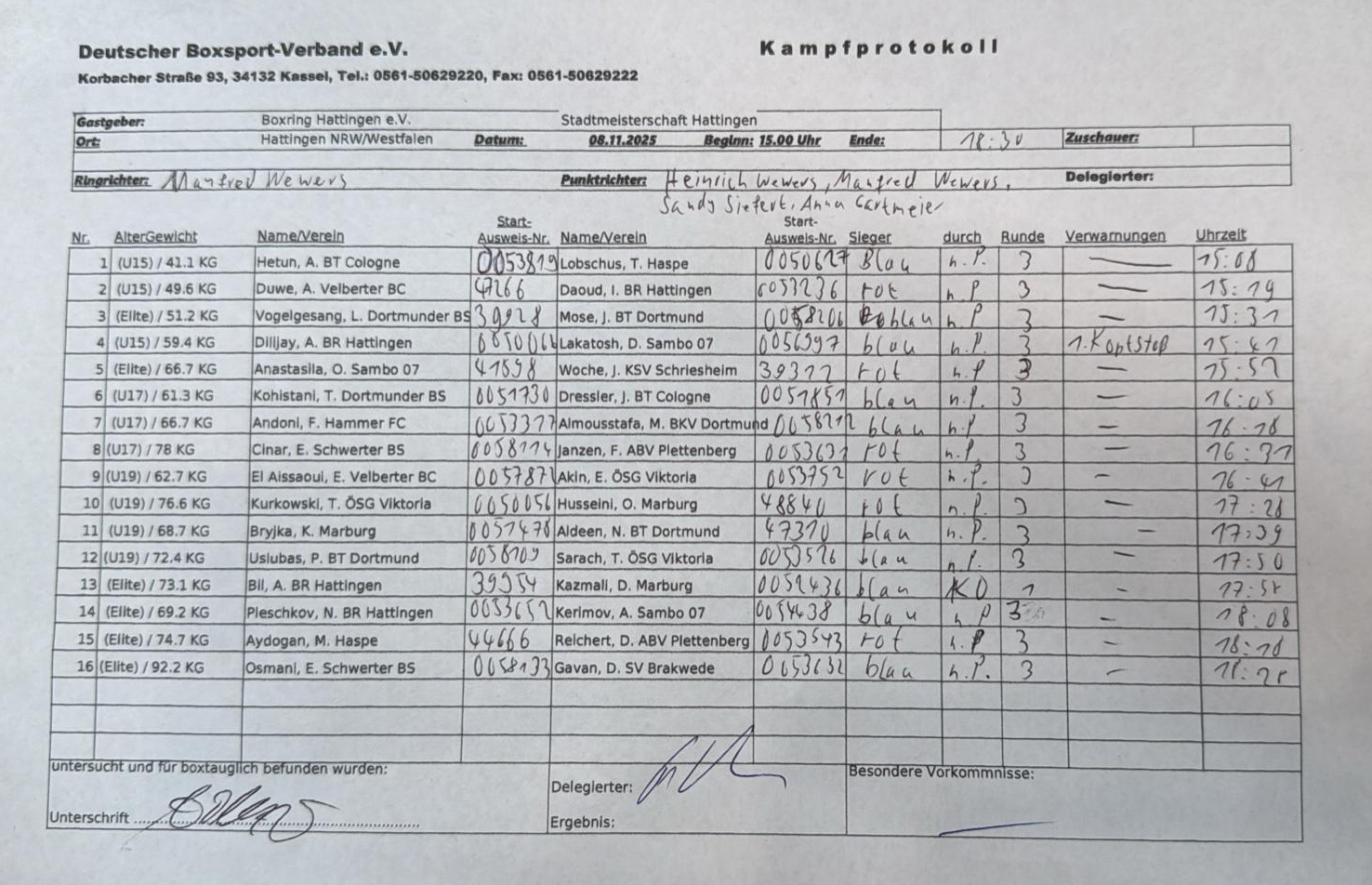 Am Samstag, dem 8.11.2025 begann in Hattingen eine neue Zeitrechnung des Boxens. In der Sporthalle Talstraße, wo früher große Boxevents stattfanden, richtete der Boxring Hattingen die Hattinger Stadtmeisterschaft im Amateurboxen aus.