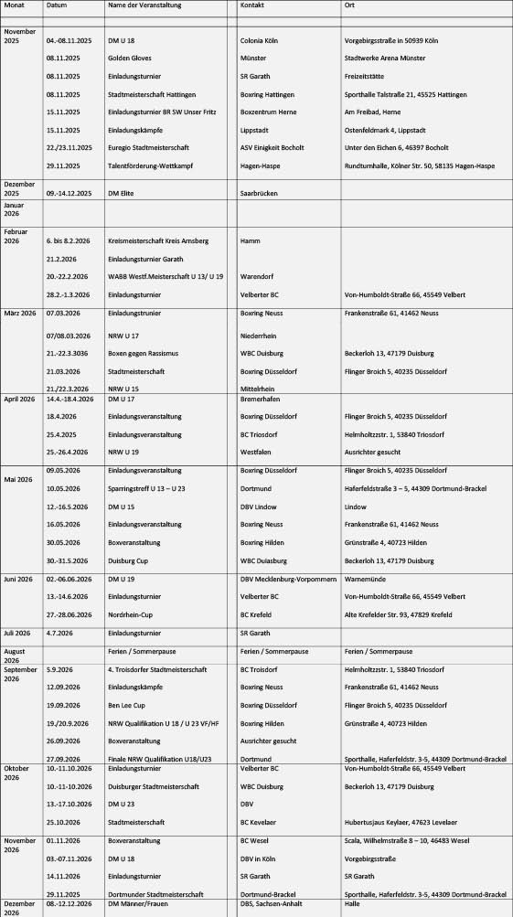 Terminübersicht 2025/2026 Boxen, Stand 11.11.2025