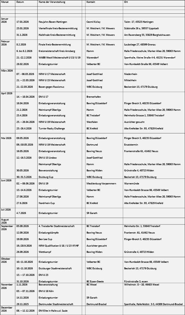Terminübersicht 2026 Boxen, Stand 01.01.2026